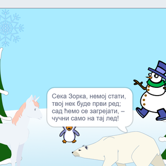 Дружи се са другарима: Снешко, пингвин Ћира, зека Пека, коњић Зеленко и меда Бели.